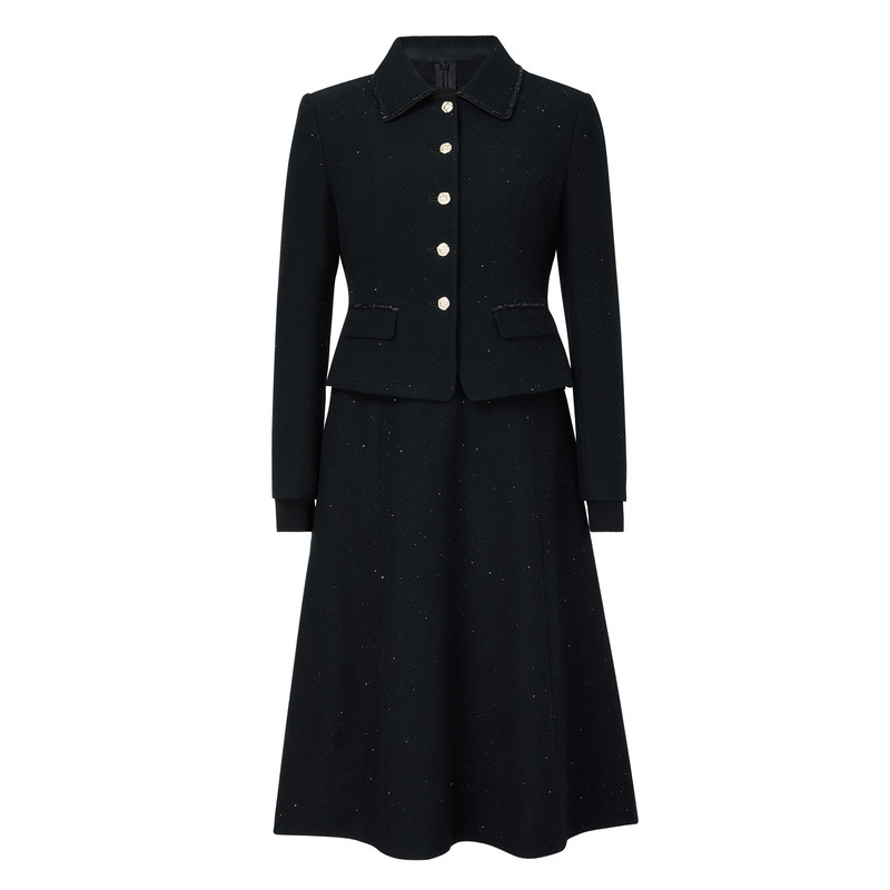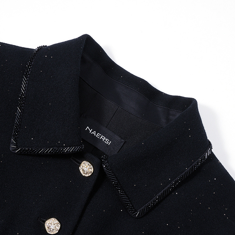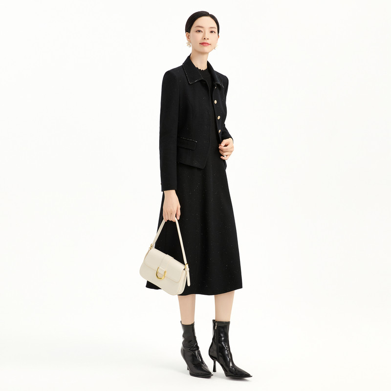 NAERSI娜尔思商场同款绵羊毛混纺连衣裙时尚香颂2025冬季新款女