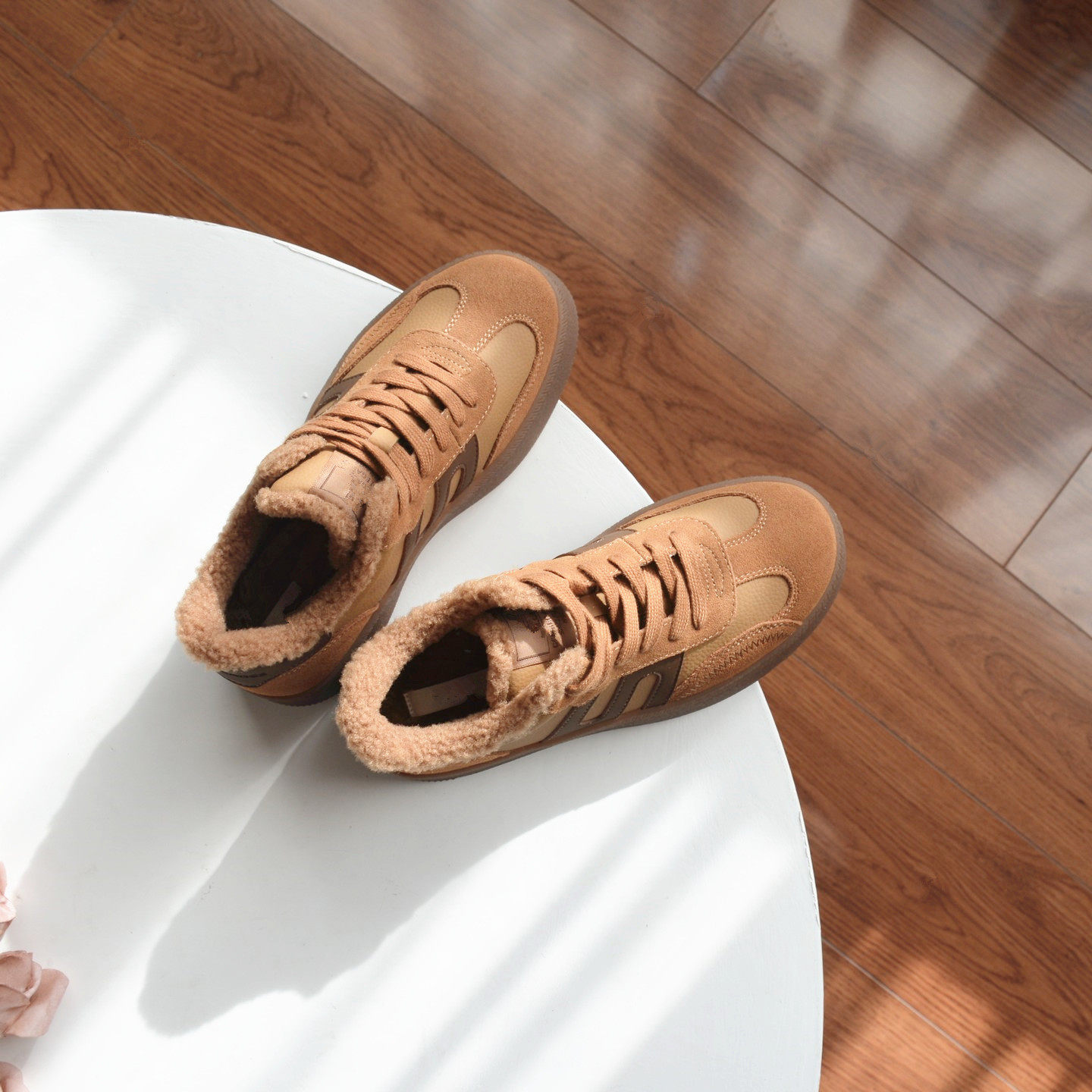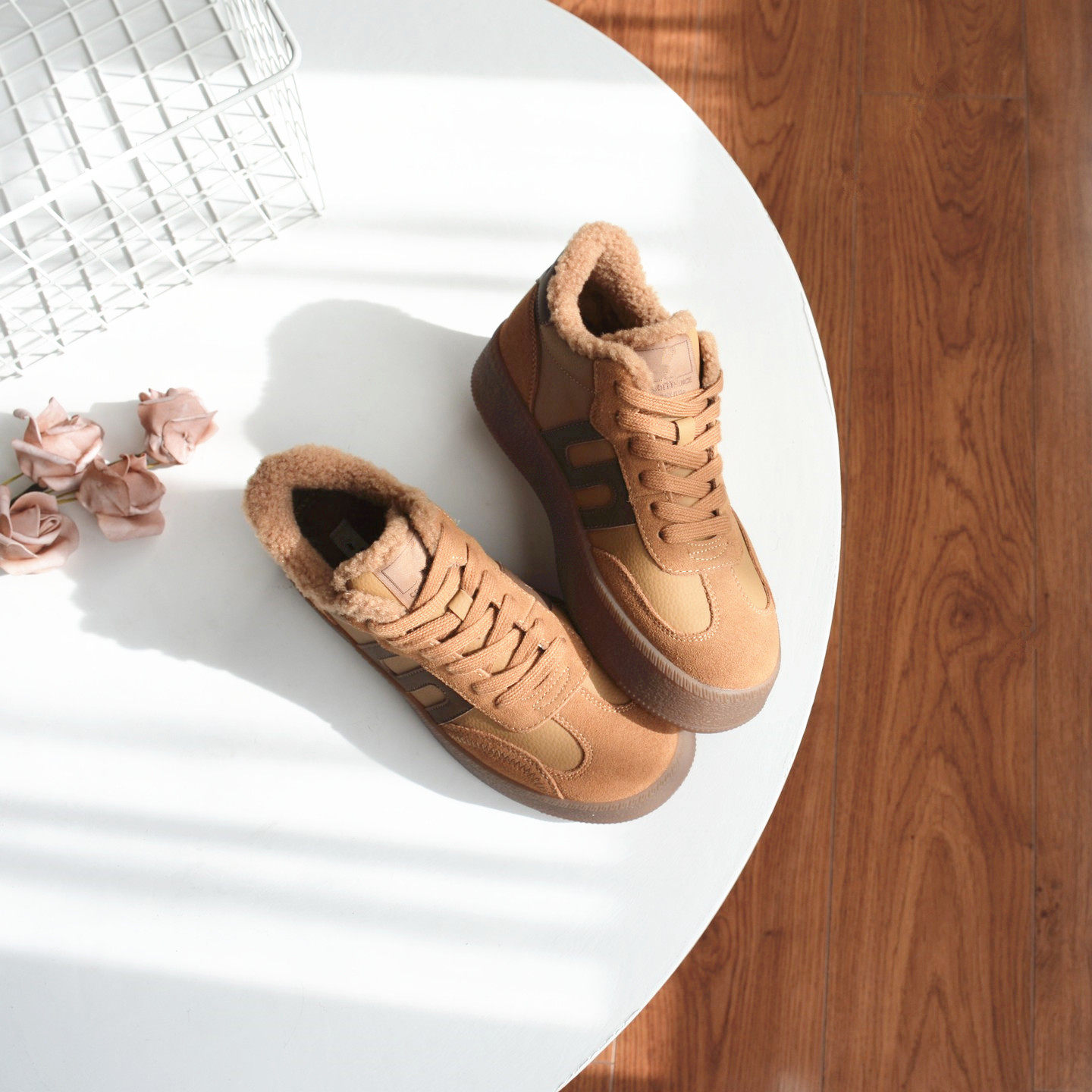 砖贵!真皮加绒板栗德训鞋2025秋冬款保暖棉鞋复古百搭厚底休闲鞋
