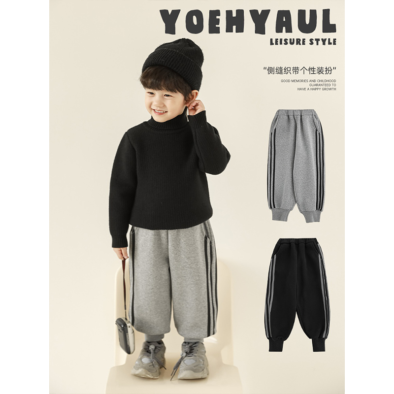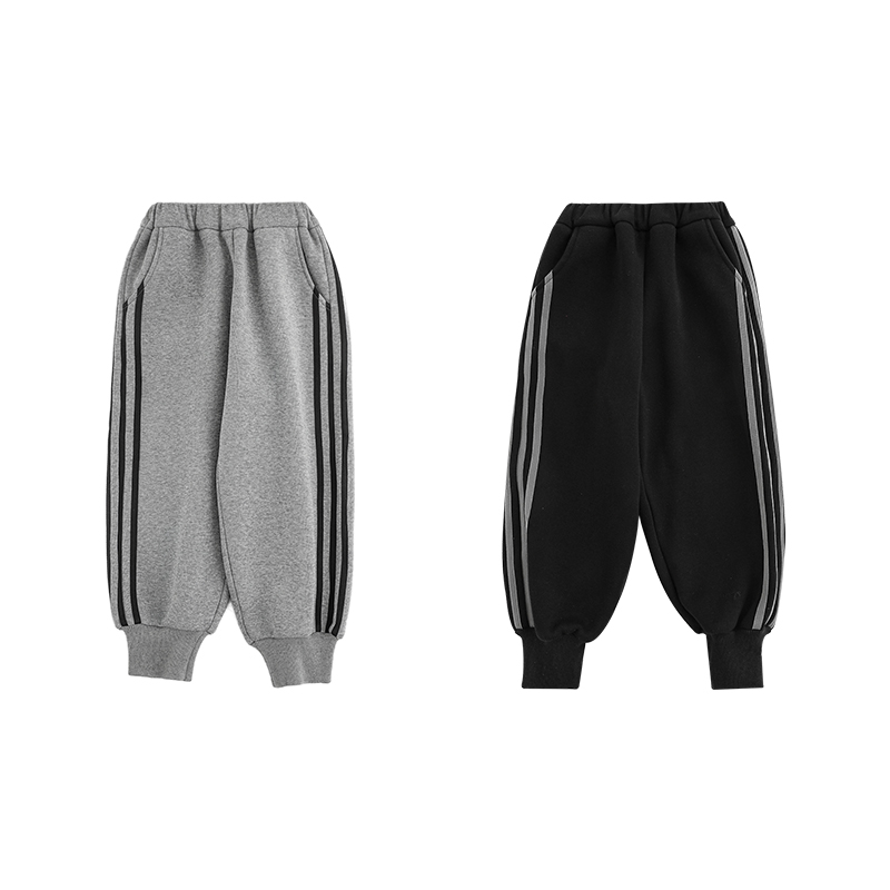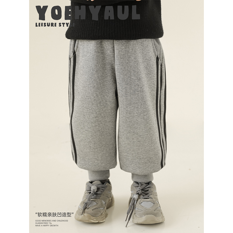 幼悠童装男童裤子2025新款复古撞色束脚运动裤冬装加绒保暖裤子潮