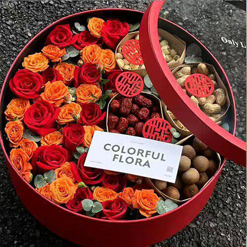 圆形早生贵子花盒鲜花束
