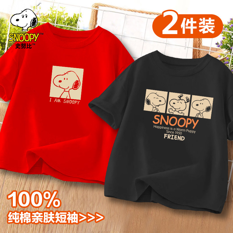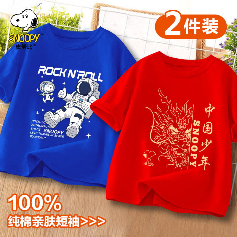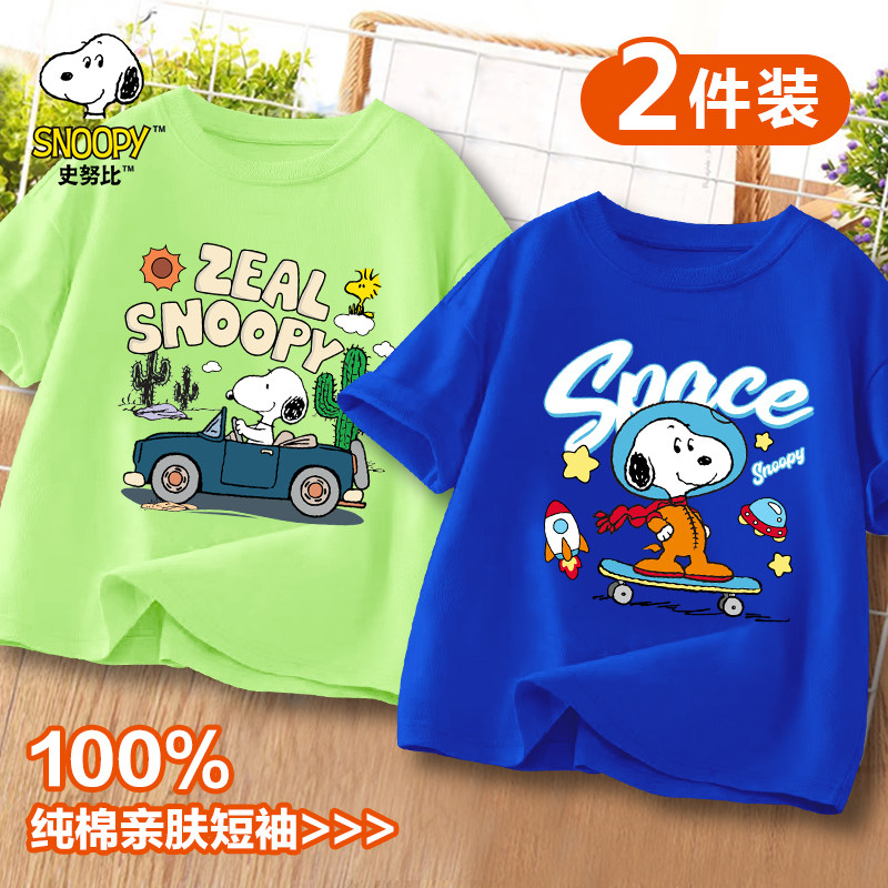 史努比男童短袖t恤2025新款夏装男孩纯棉半袖儿童夏季体恤衫衣服