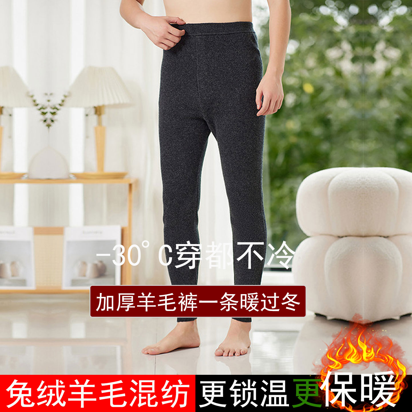 鄂尔多斯市羊毛裤女士加厚保暖秋冬中青老年大码内穿打底羊绒裤男