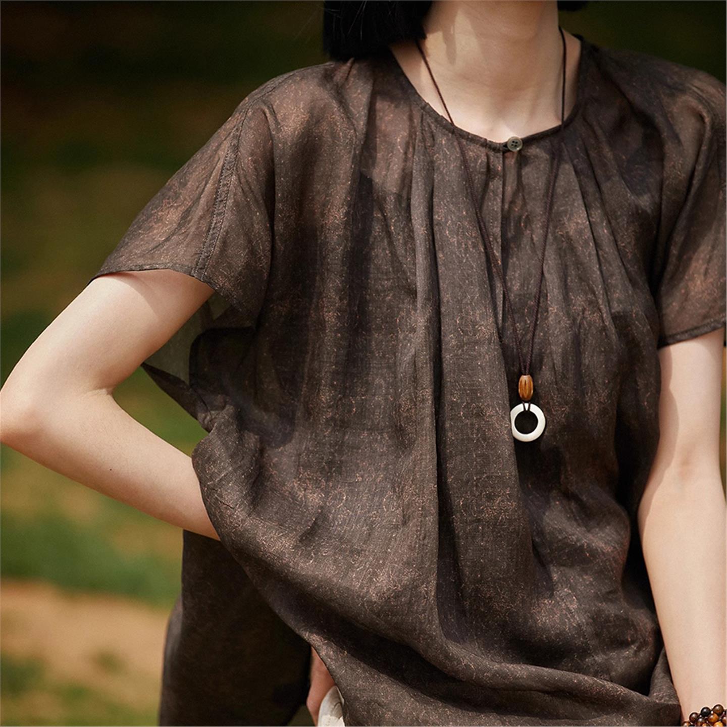 哥弟清仓官方2025夏季新款国风新中式短袖衬衫女洋气宽松上衣
