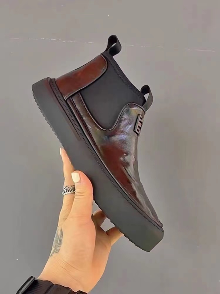 一脚蹬爸爸鞋2025春秋男士真皮休闲板鞋男鞋潮流亮皮豆豆皮鞋男款