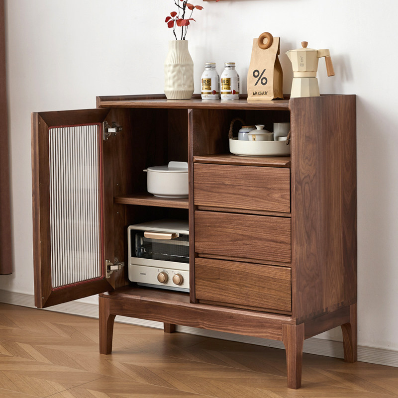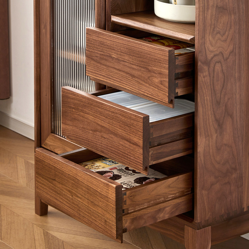 北美黑胡桃木屿木餐边柜实木客厅餐厅收纳柜玻璃门储物柜茶水柜