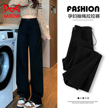 猫人孕妇裤子春秋款外穿2025新款秋冬加绒无托腹直筒牛仔长裤冬装