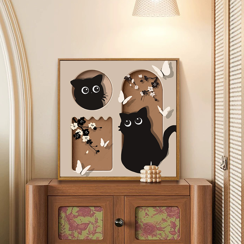 中古风卡通可爱猫咪数字油画diy手工丙烯涂色填充填色卧室装饰画