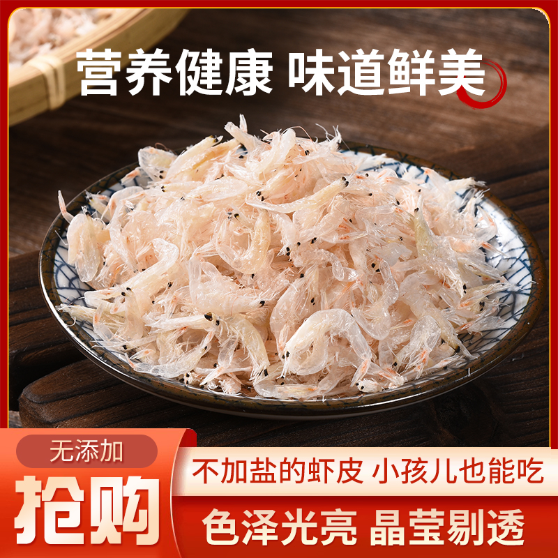 生晒虾皮无盐海米虾米100g新鲜干货淡干虾皮粉即食宝宝补钙非特级