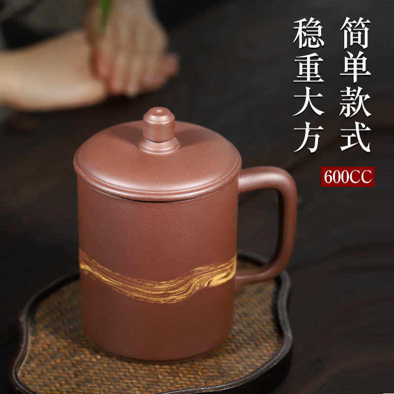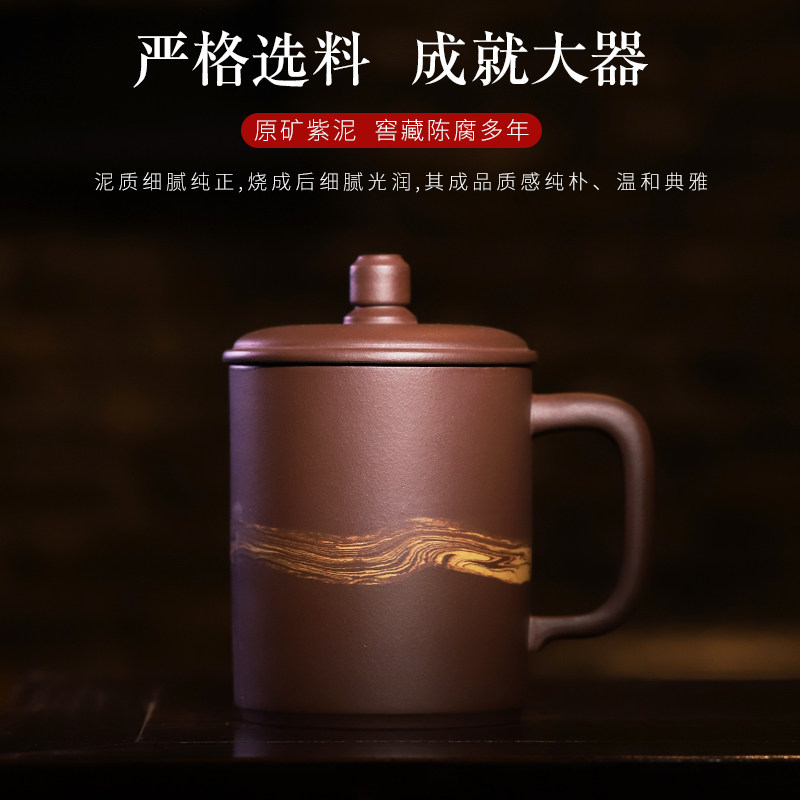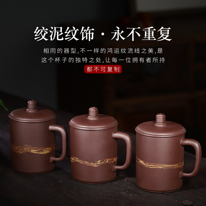 陶灵宜兴紫砂杯纯色盖杯男士大容量个人杯定制刻字手工时来运转