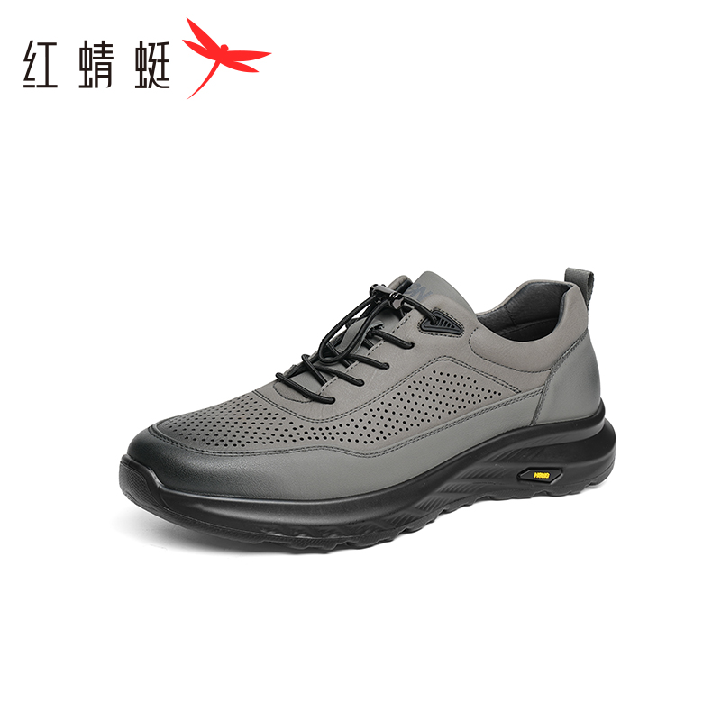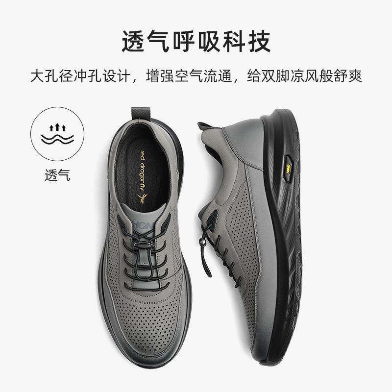 红蜻蜓镂空皮鞋男款春秋透气运动男鞋软底中年爸爸休闲男士打孔鞋