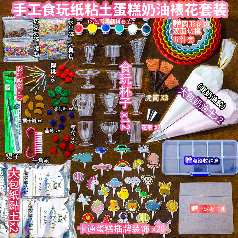 儿童手工diy玩具仿真食玩冰淇淋奶油胶纸粘土蛋糕果酱材料包套装