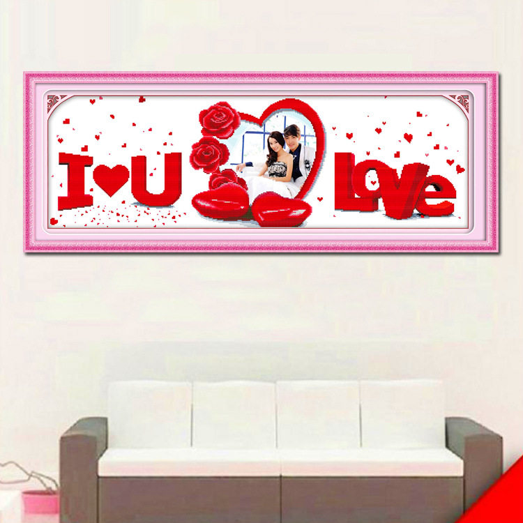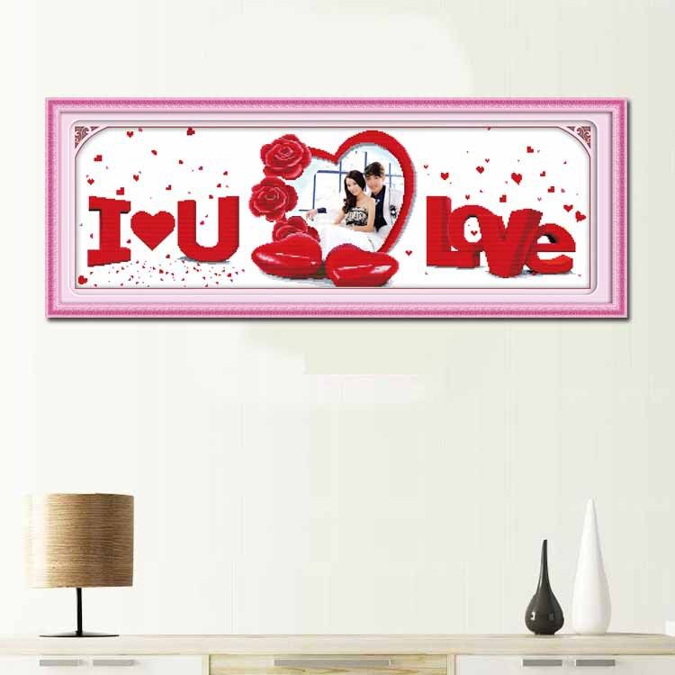 进口十字绣印花中格纯棉线绣客厅卧室床头画喜庆love照片浪漫回忆