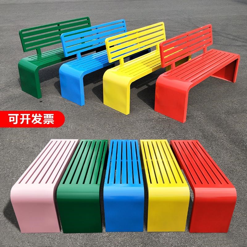 户外长椅公园长凳广场铁艺公园椅休息靠背长条凳彩色庭院休闲椅子