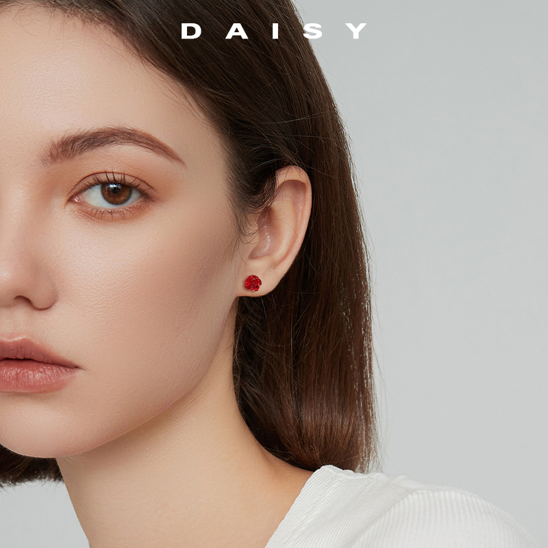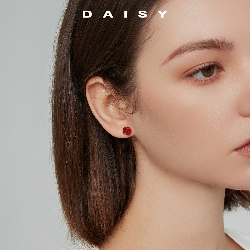 养耳洞复古玫瑰花钛钢耳钉女轻奢小众气质红色耳环螺丝扣时尚耳饰