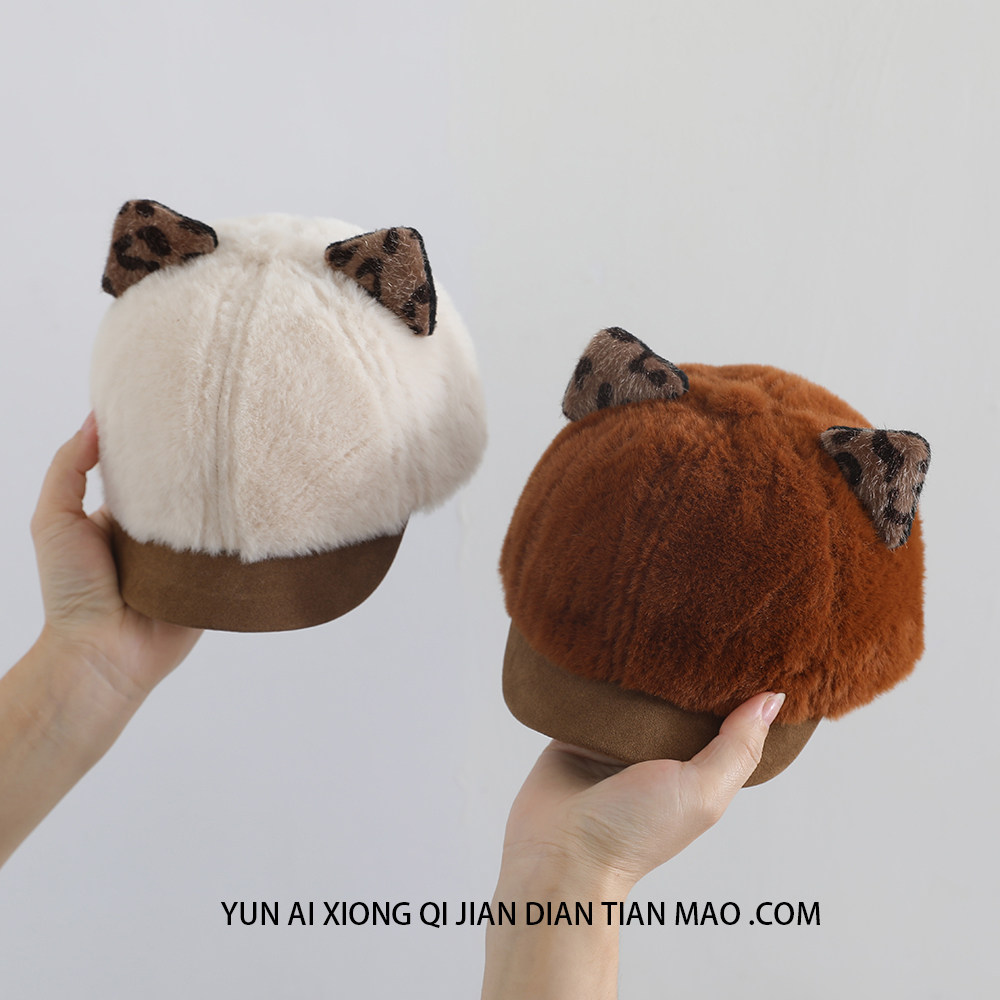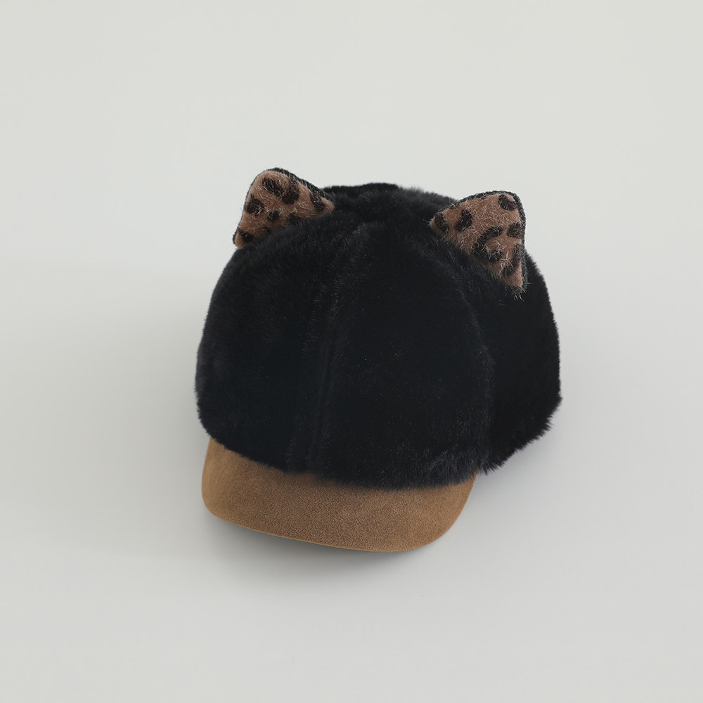 宝宝鸭舌帽秋冬季保暖男童女婴幼儿韩版猫咪毛绒棒球帽防风保暖冬