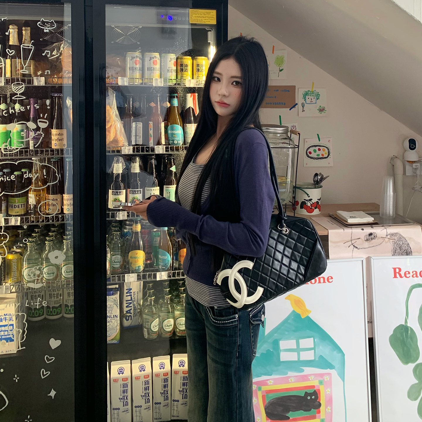 饭饭又饿了韩系大V领针织开衫女秋季小众设计感辣妹显瘦长袖上衣