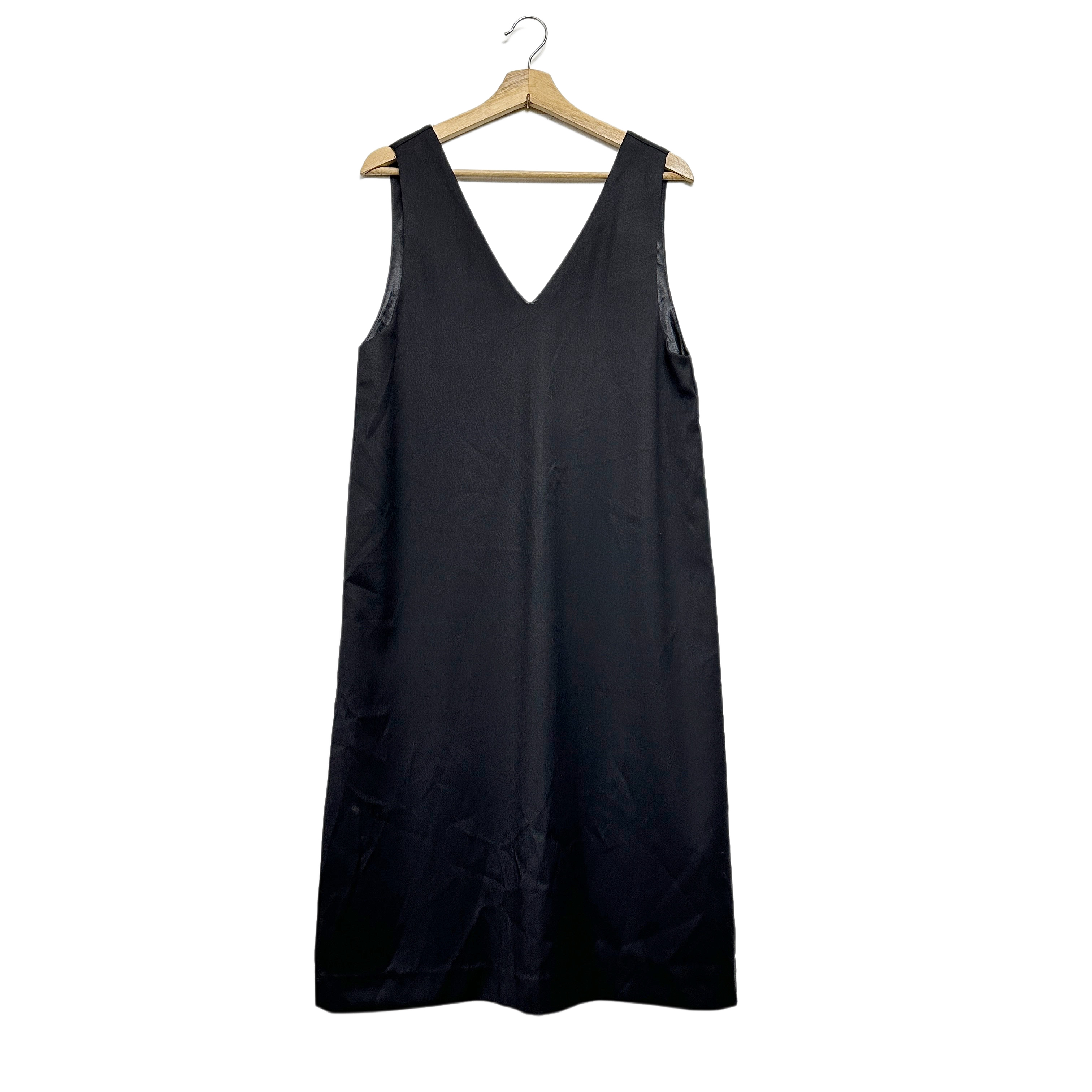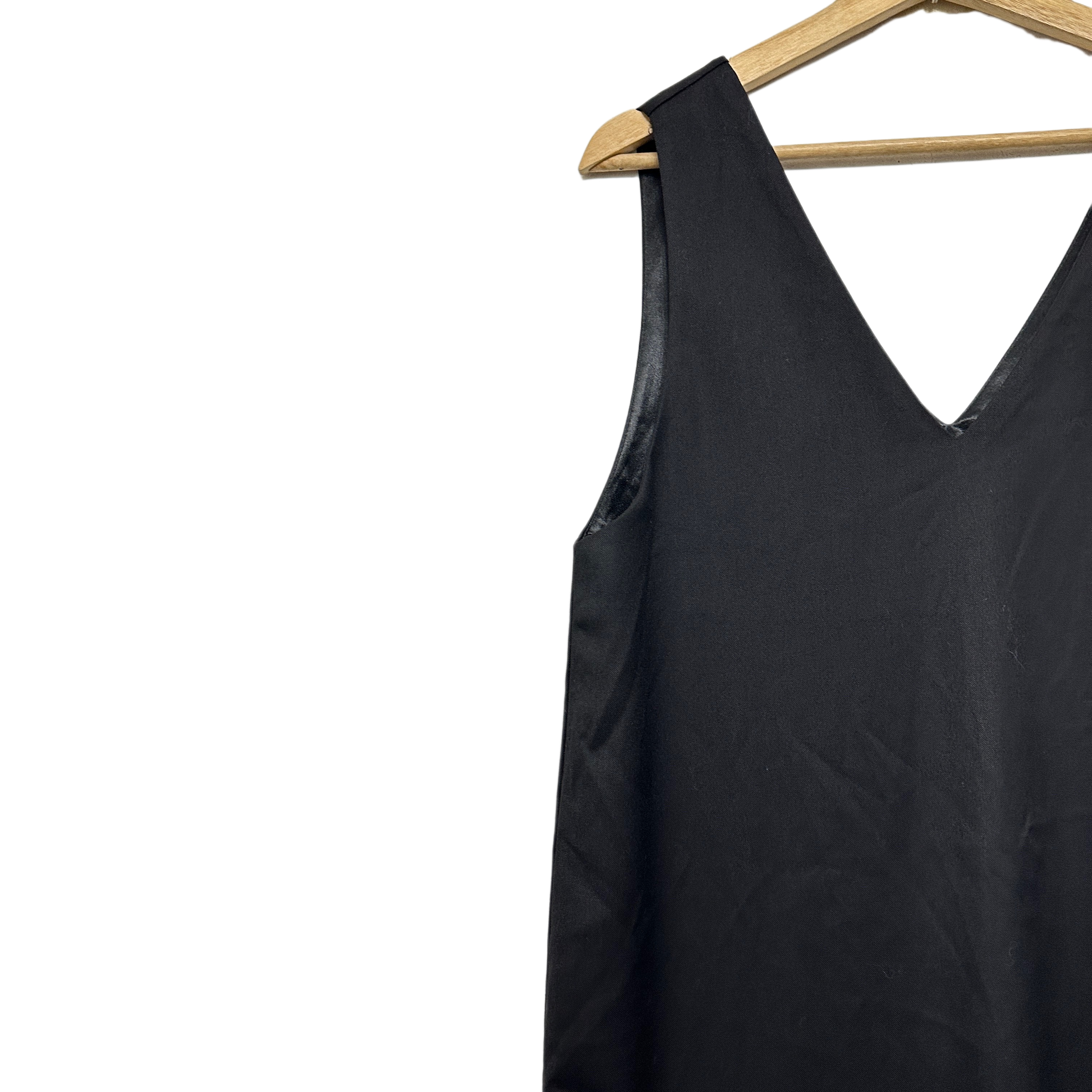 圣迪折扣女装 时尚黑色V领无袖长裙简约气质背心连衣裙