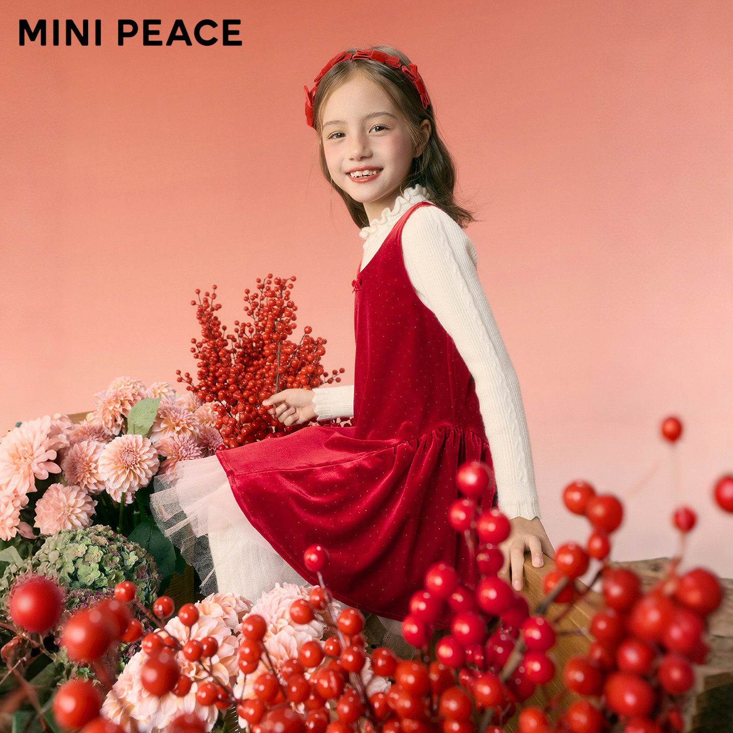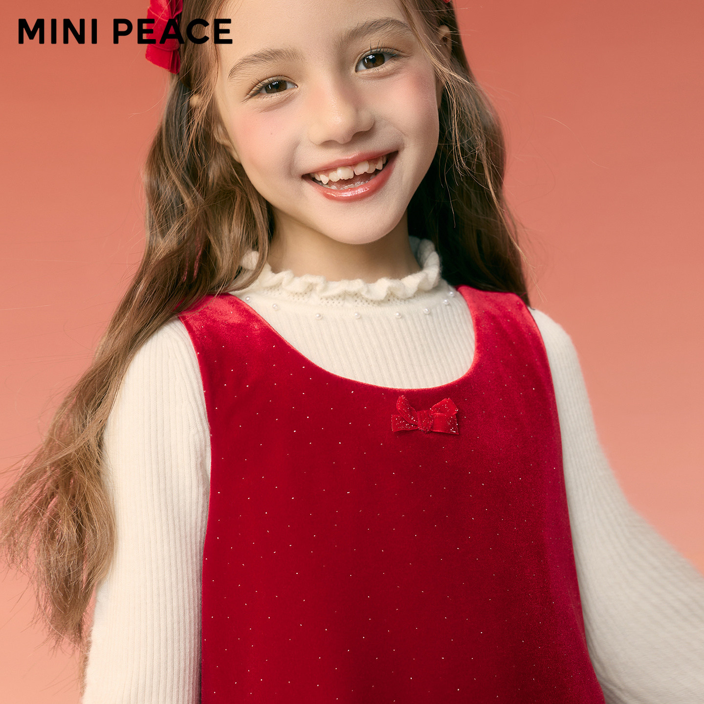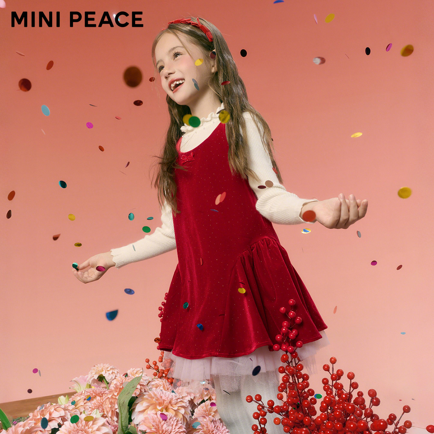 【公主系列】MINIPEACE太平鸟童装女童红色连衣裙新年丝绒背心裙