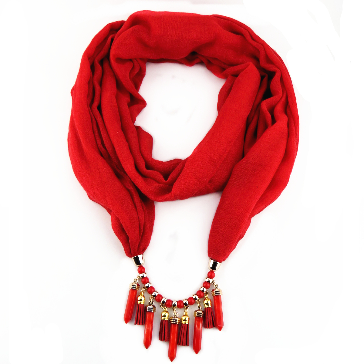 韩版秋冬女百搭简约棉麻民族风围脖 吊坠项链吊坠饰品纯色围巾