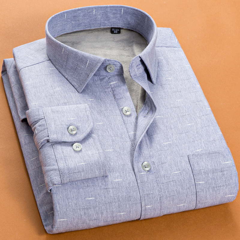 秋冬季商务长袖男士保暖衬衫加绒加厚大码衬衣中青年爸爸装寸衫