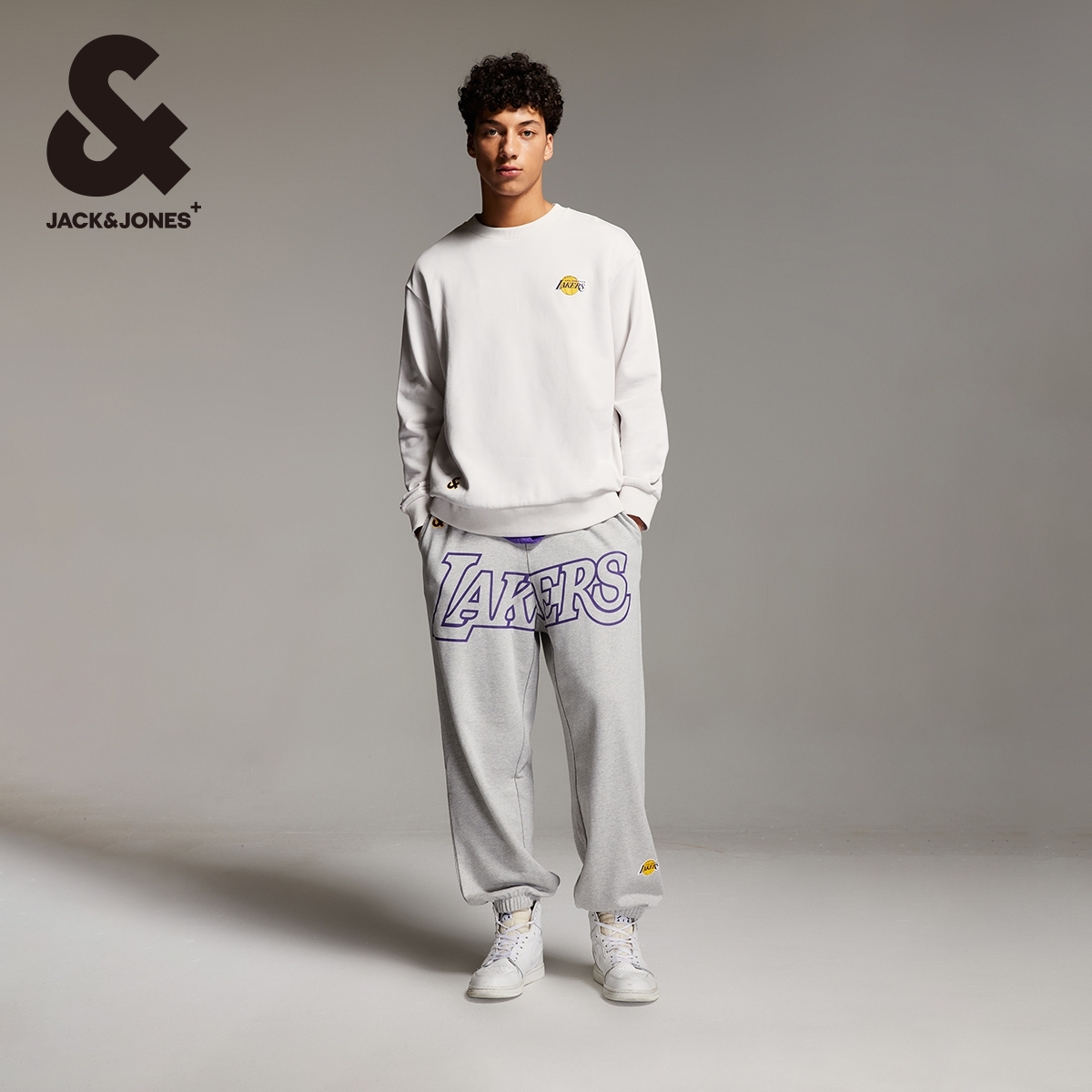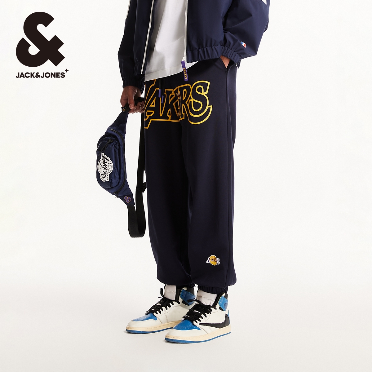 杰克琼斯outlets春季NBA联名湖人队字母胶印舒适束脚休闲裤子男装
