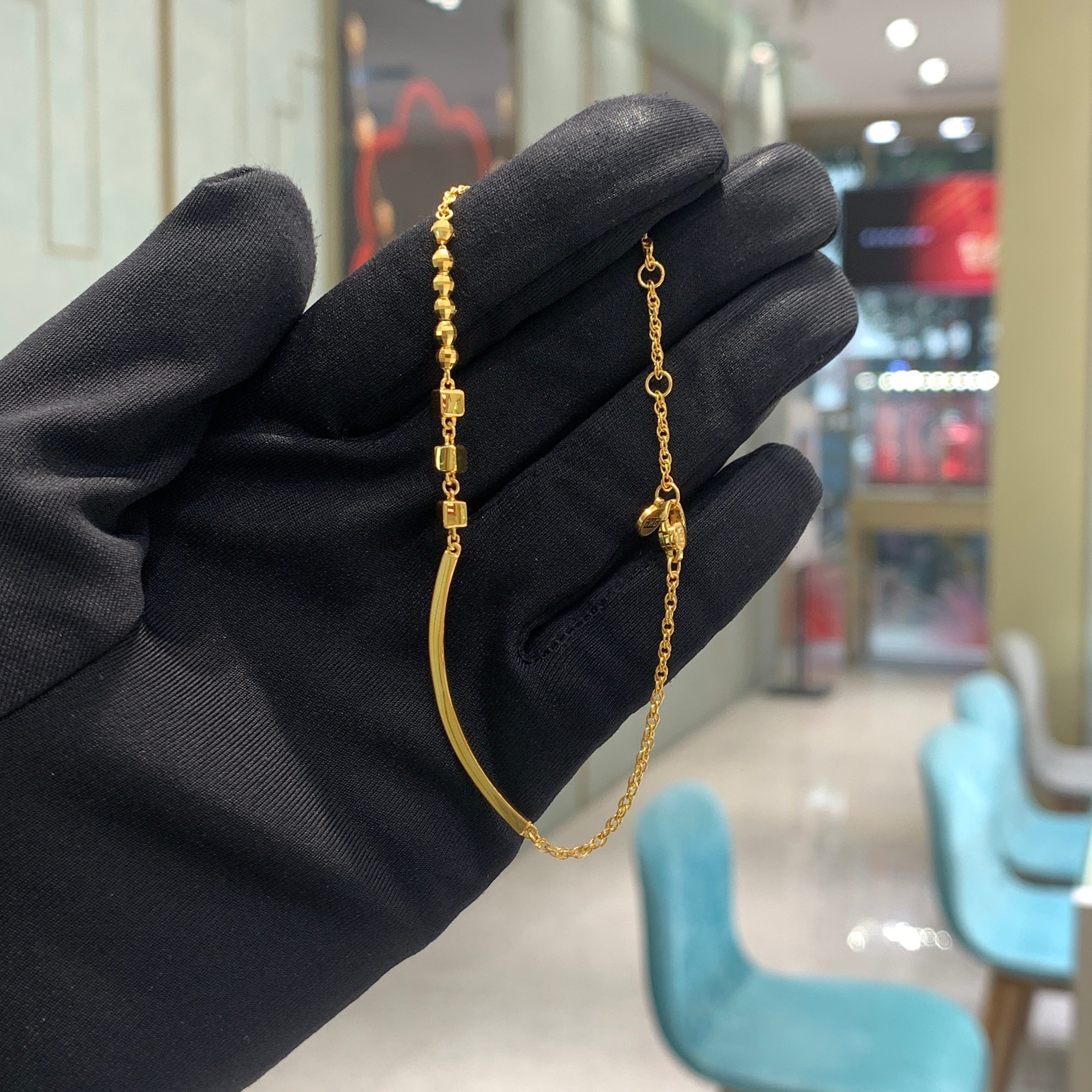 ING系列小方糖微笑足金黄金手链