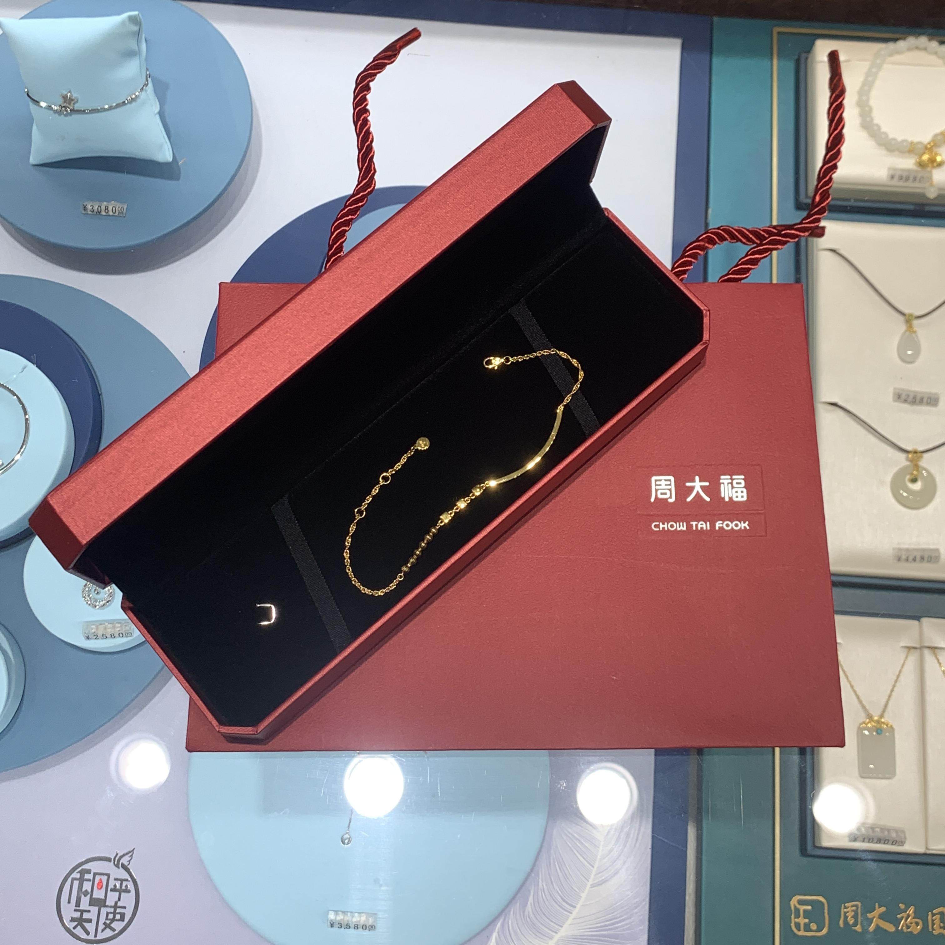 周大福代购 ING系列小方糖微笑足金黄金手链女 克减80计价F233799
