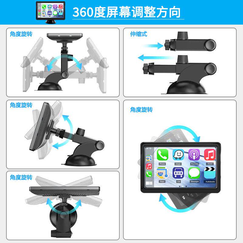7寸便携式无线CarPlay无线AndroidAuto车载吸盘式导航仪显示器