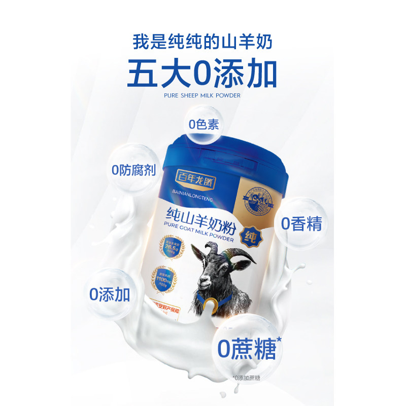 百年龙腾纯山羊奶粉350g罐装无蔗糖中老年成人学生高钙官方旗舰店