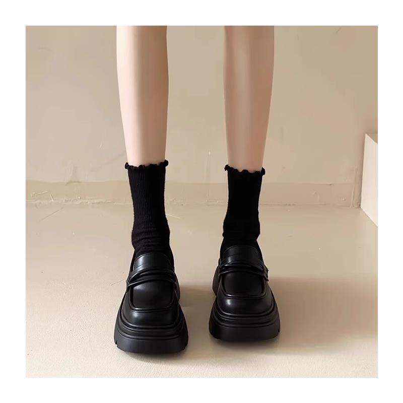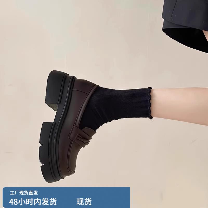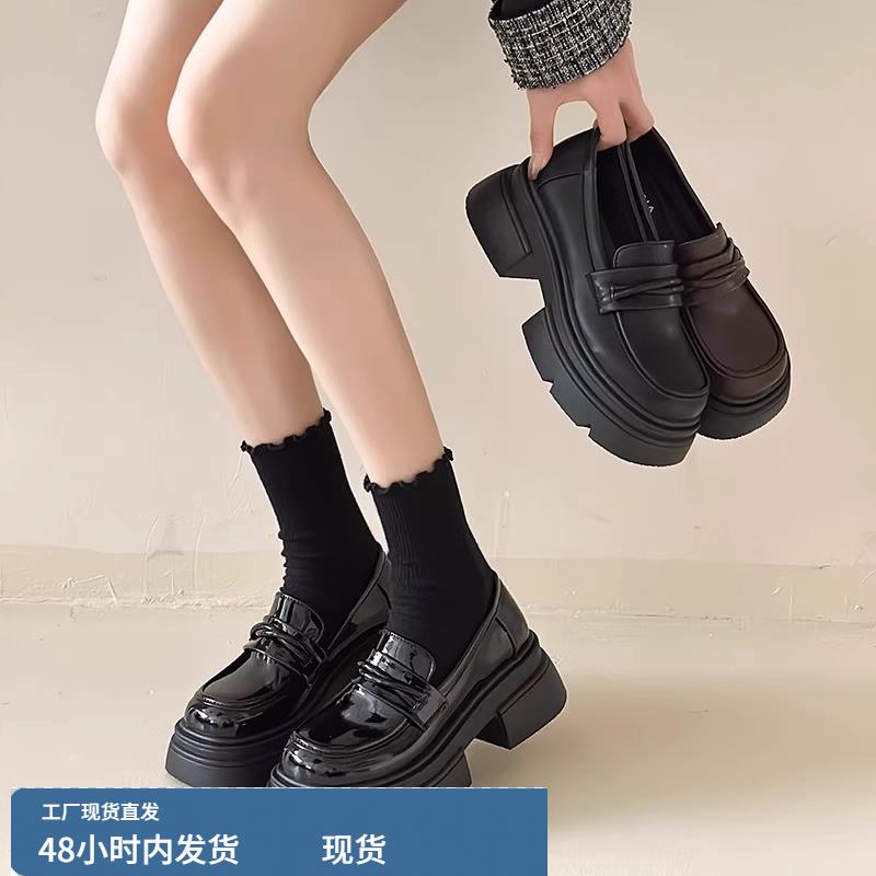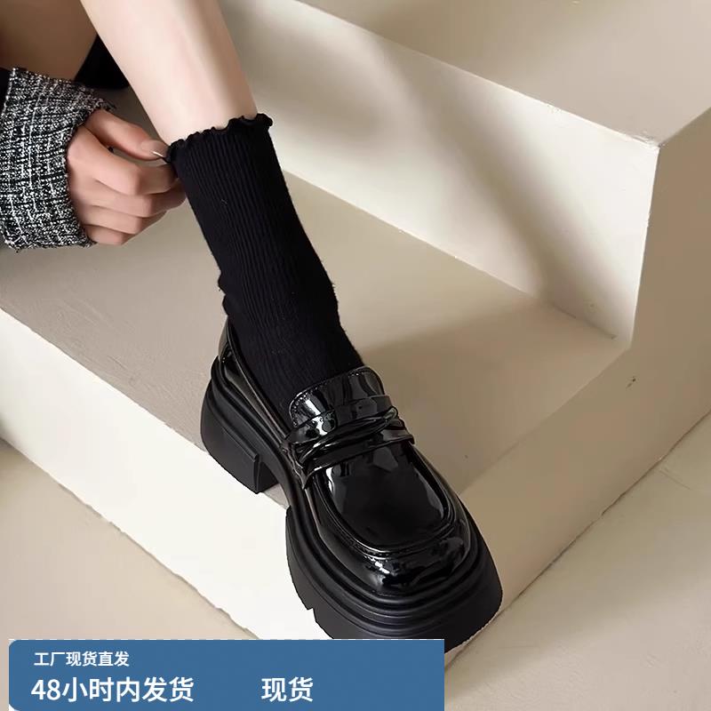 超软羊皮黑色乐福鞋女厚底粗跟2025春秋爆款英伦jk学院风松糕单鞋