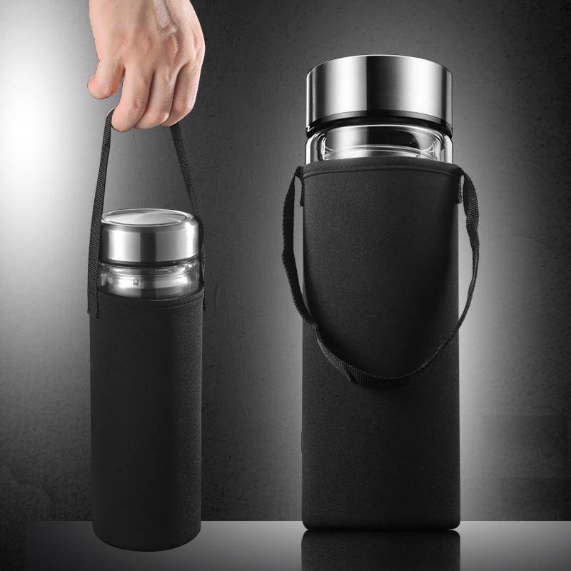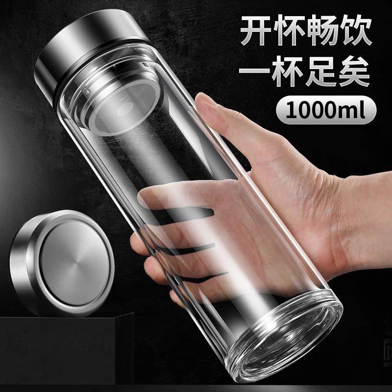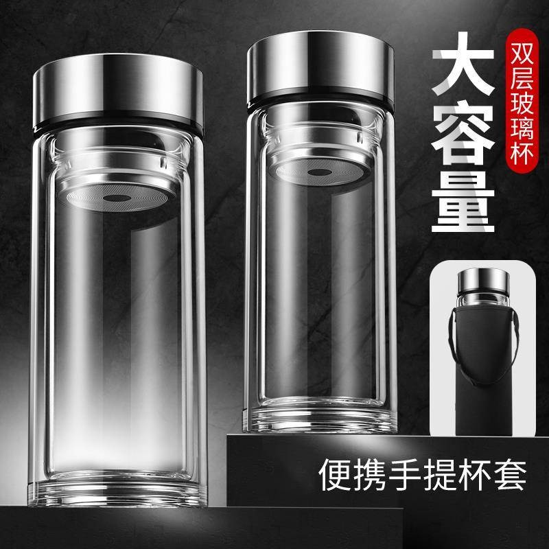 双层大容量玻璃杯男透明加厚耐热泡茶杯带盖家用杯子车载便携水杯