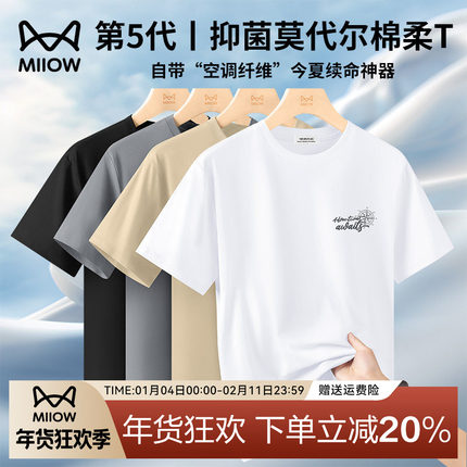 猫人冰丝莫代尔棉高端短袖T恤