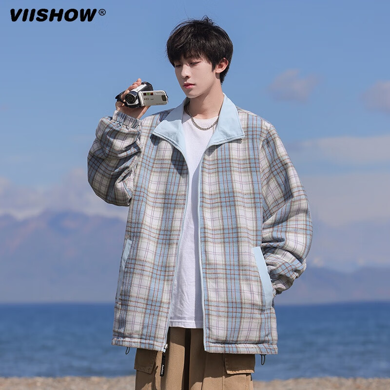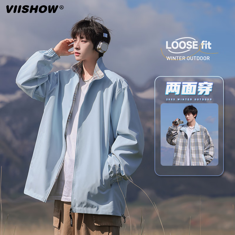 viishow双面穿外套男秋季新款美式棒球服夹克情侣简约宽松潮外套