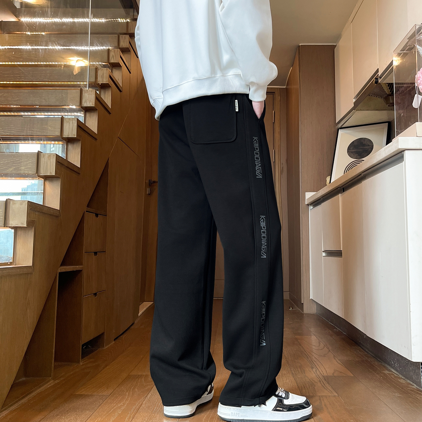 黑色运动卫裤子男款潮流春秋新款青少年字母印花阔腿直筒休闲长裤