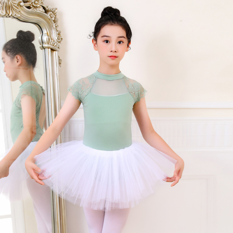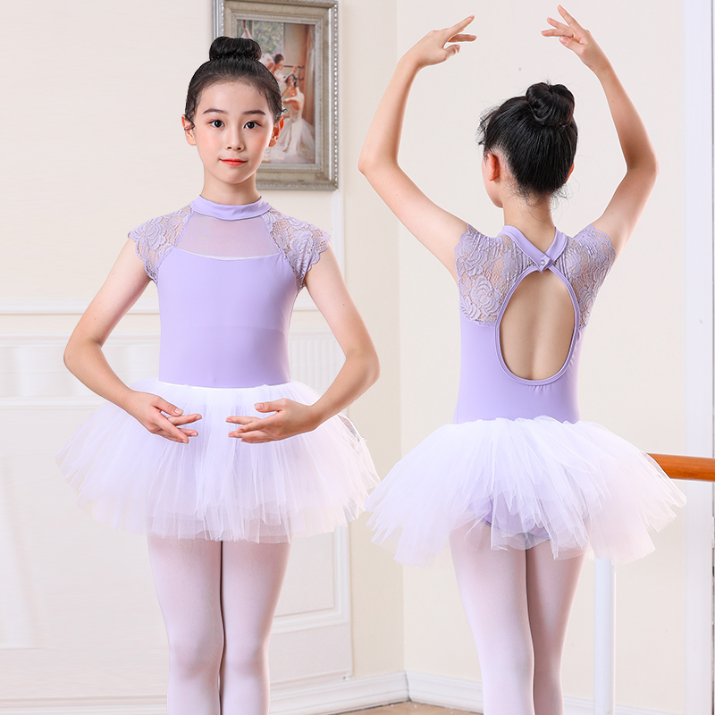 儿童夏季舞蹈服装网纱蕾丝花边立领女童练功服露背少儿跳舞体服