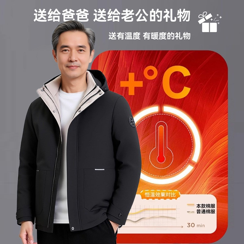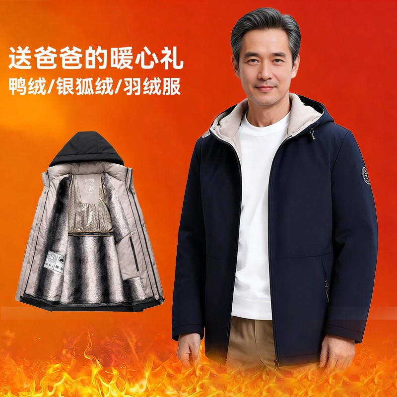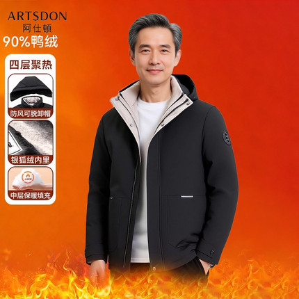 Artsdon/阿仕顿2025高端男士保暖加绒加厚可拆卸内胆银狐绒羽绒服
