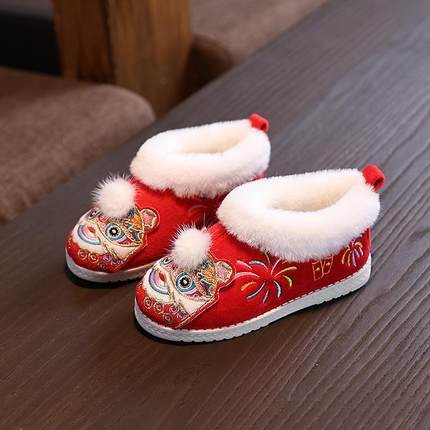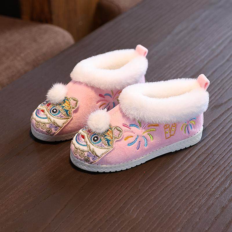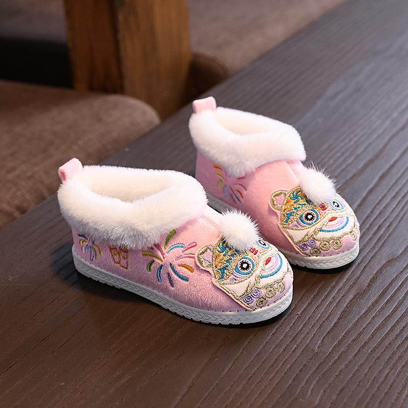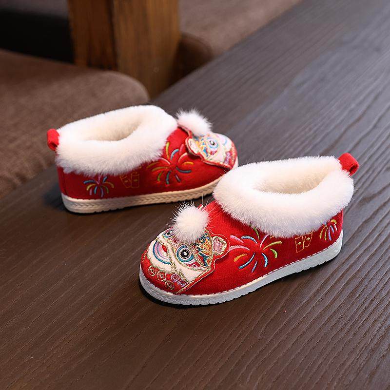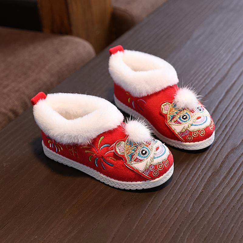 冬款男女童汉服鞋子宝宝棉鞋保暖加绒绣花鞋儿童虎头鞋古风拜年鞋