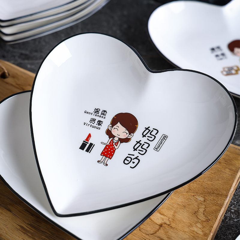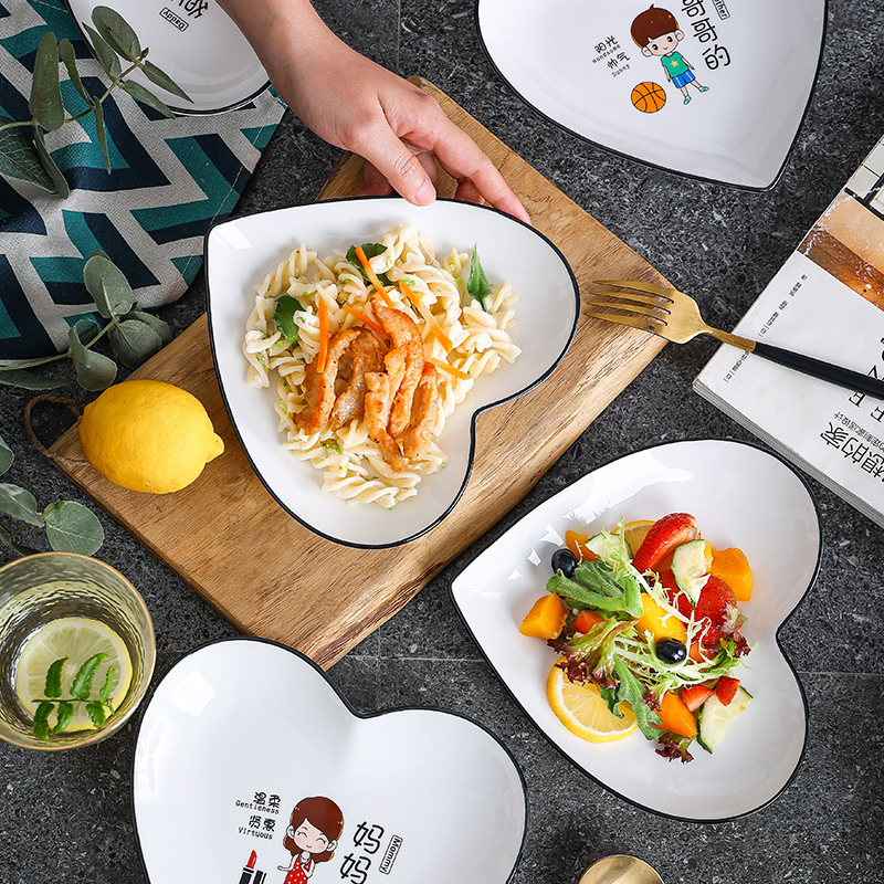 创意爱心造型盘子好看的个性陶瓷网红 ins家用水果桃心形可爱碟子