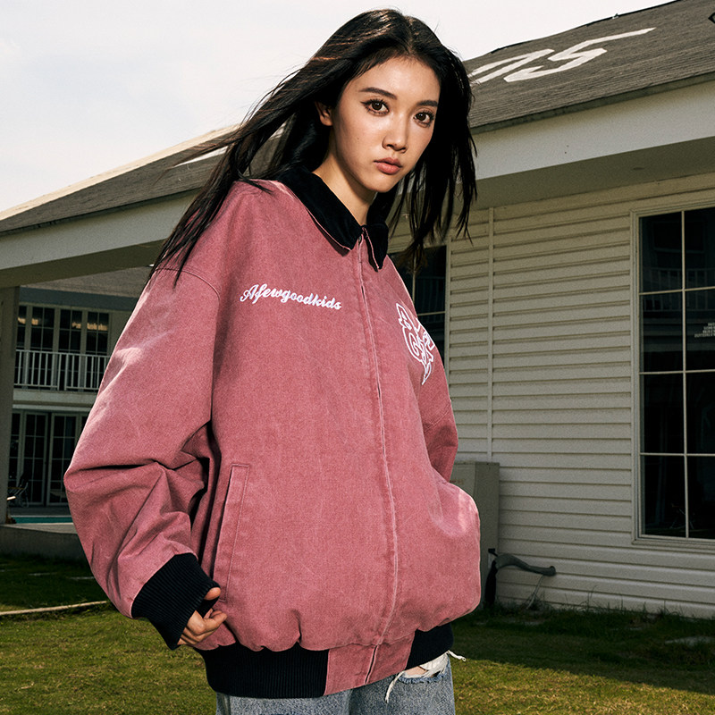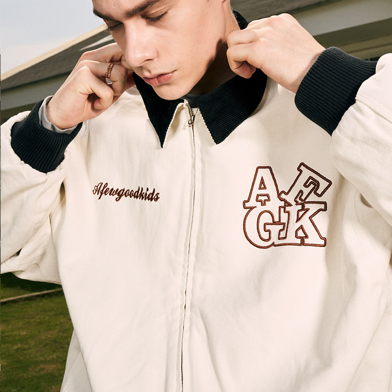 【章若楠同款】AFGK秋冬美式复古刺绣加棉底特律夹克棉服潮牌外套