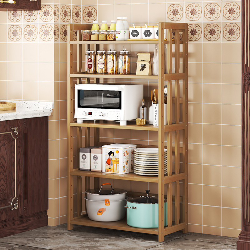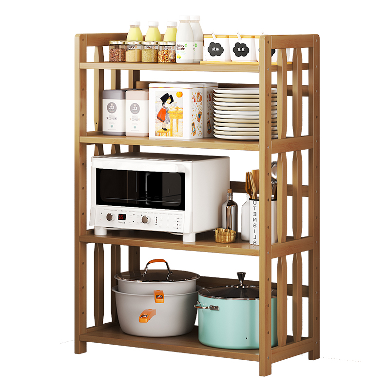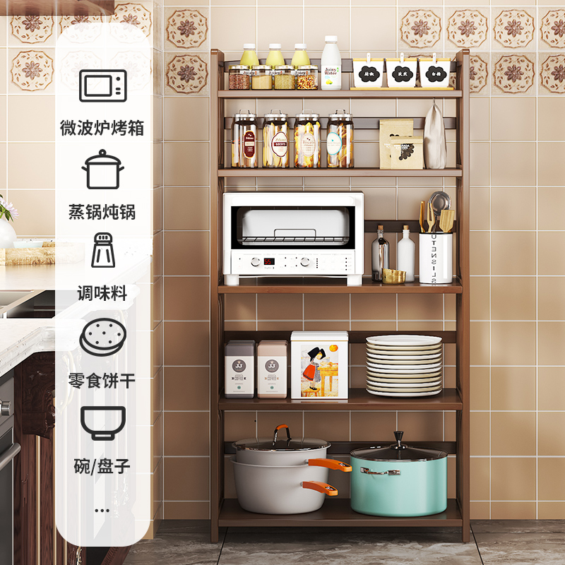 加厚厨房置物架橱柜3层4层烤箱微波炉储物架实木竹落地式多层货架