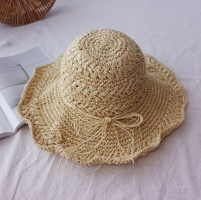 遮阳防晒帽子女夏天纯手工钩针大沿草帽渔夫帽蝴蝶结盆帽出游海边