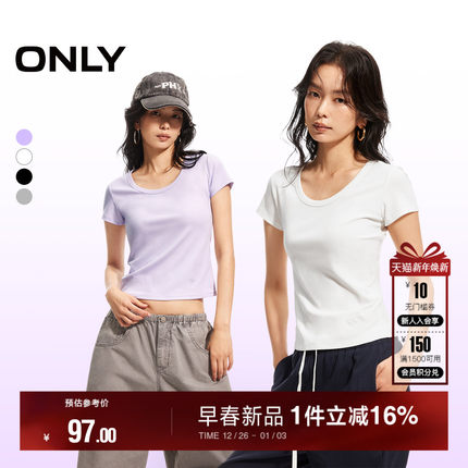 【热销万能T】ONLY2026春季新款修饰肩颈U型领口纯色修身短袖T恤