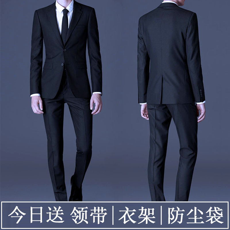 秋冬男士西服套装深灰色职业装商务工作服三件套伴郎新郎结婚礼服