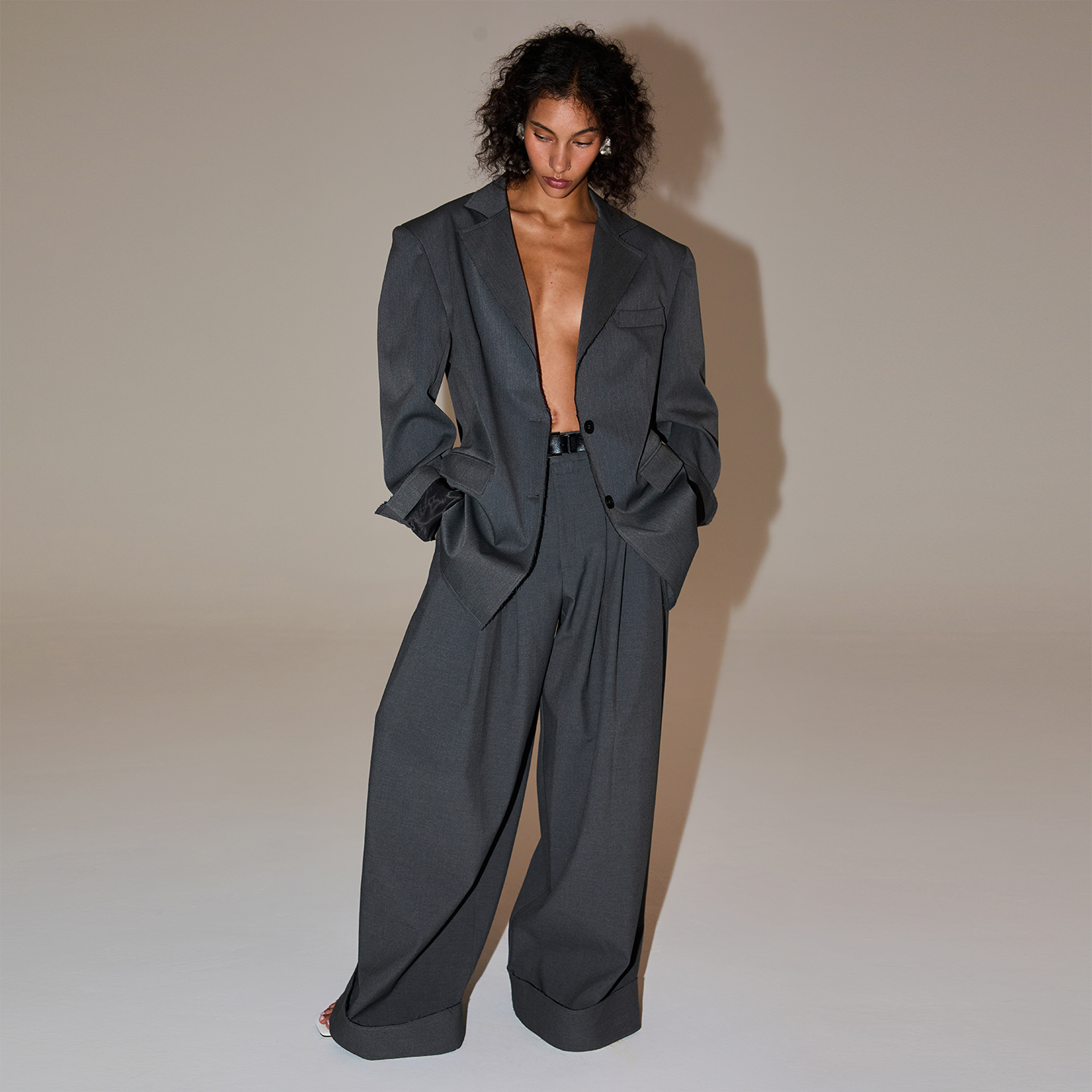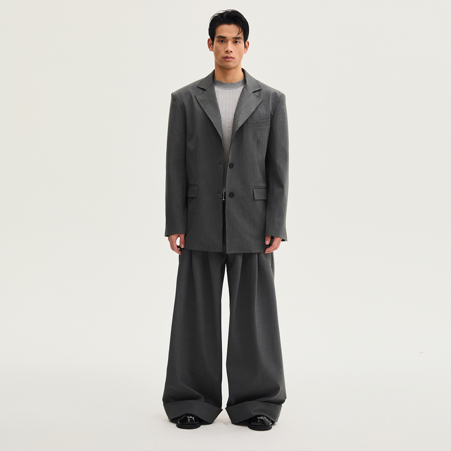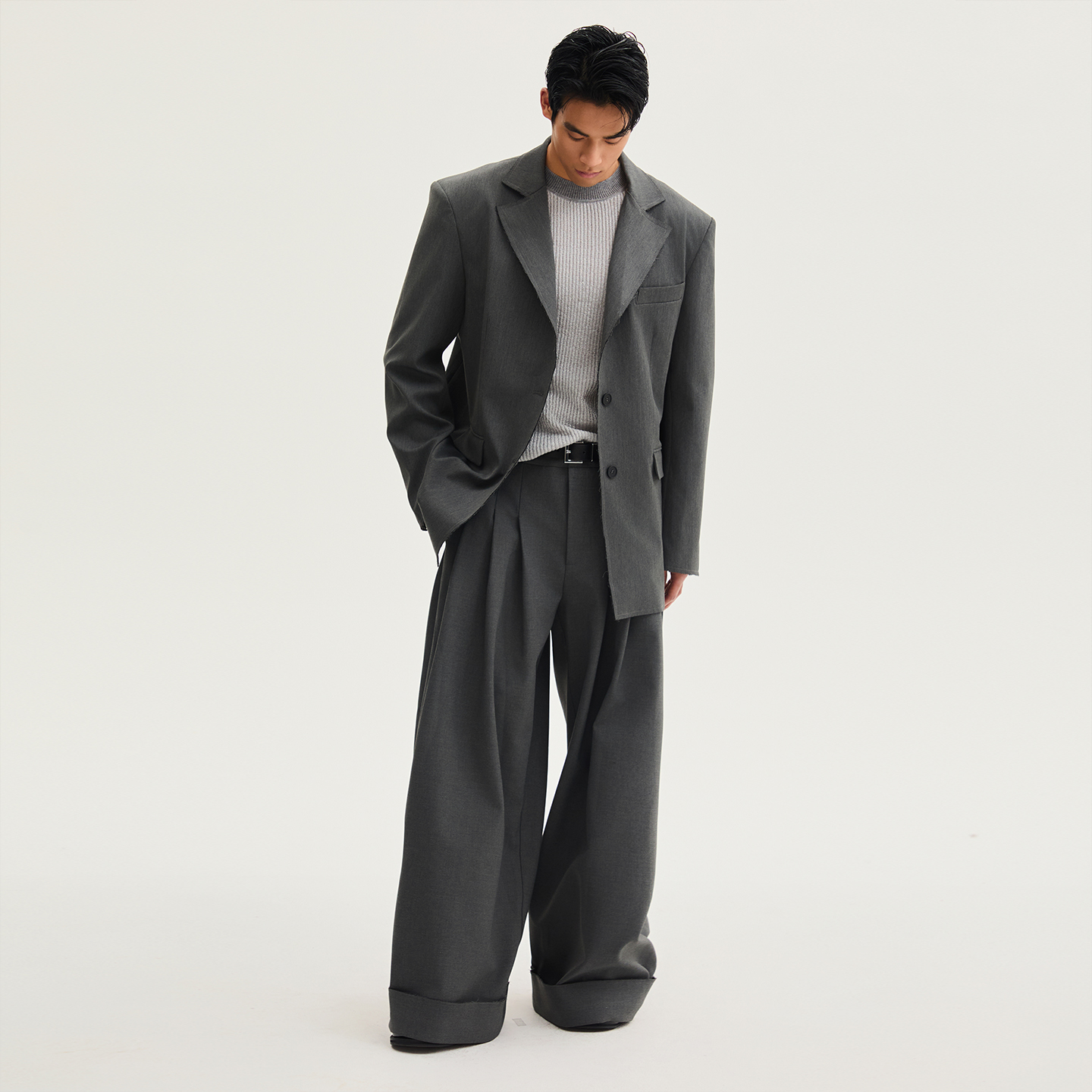 SouthStudio西装灰色男女同款25秋毛边剪裁设计宽松单排扣西服