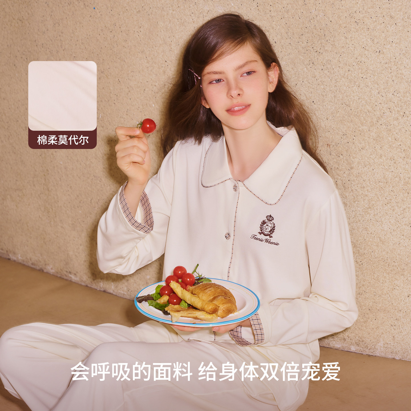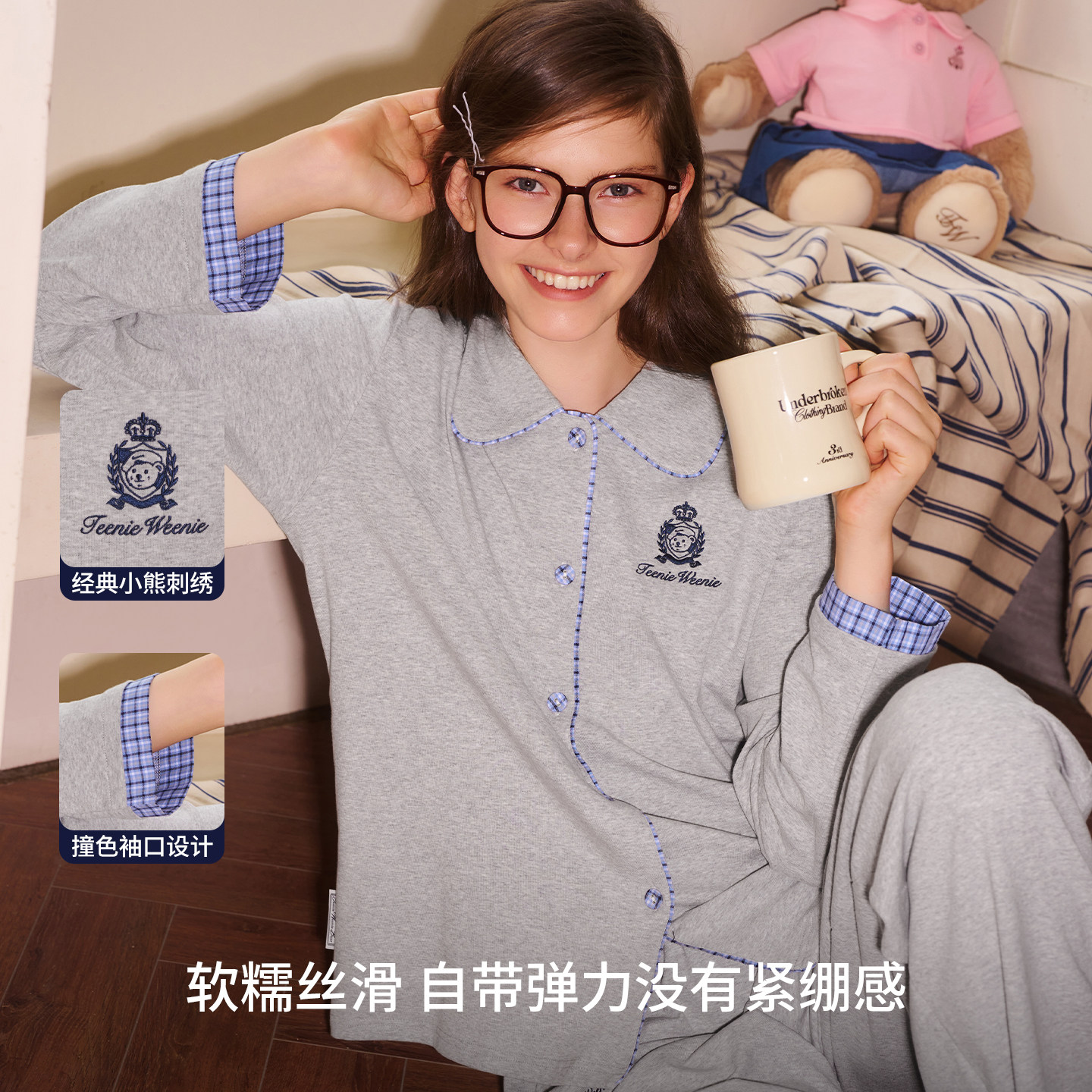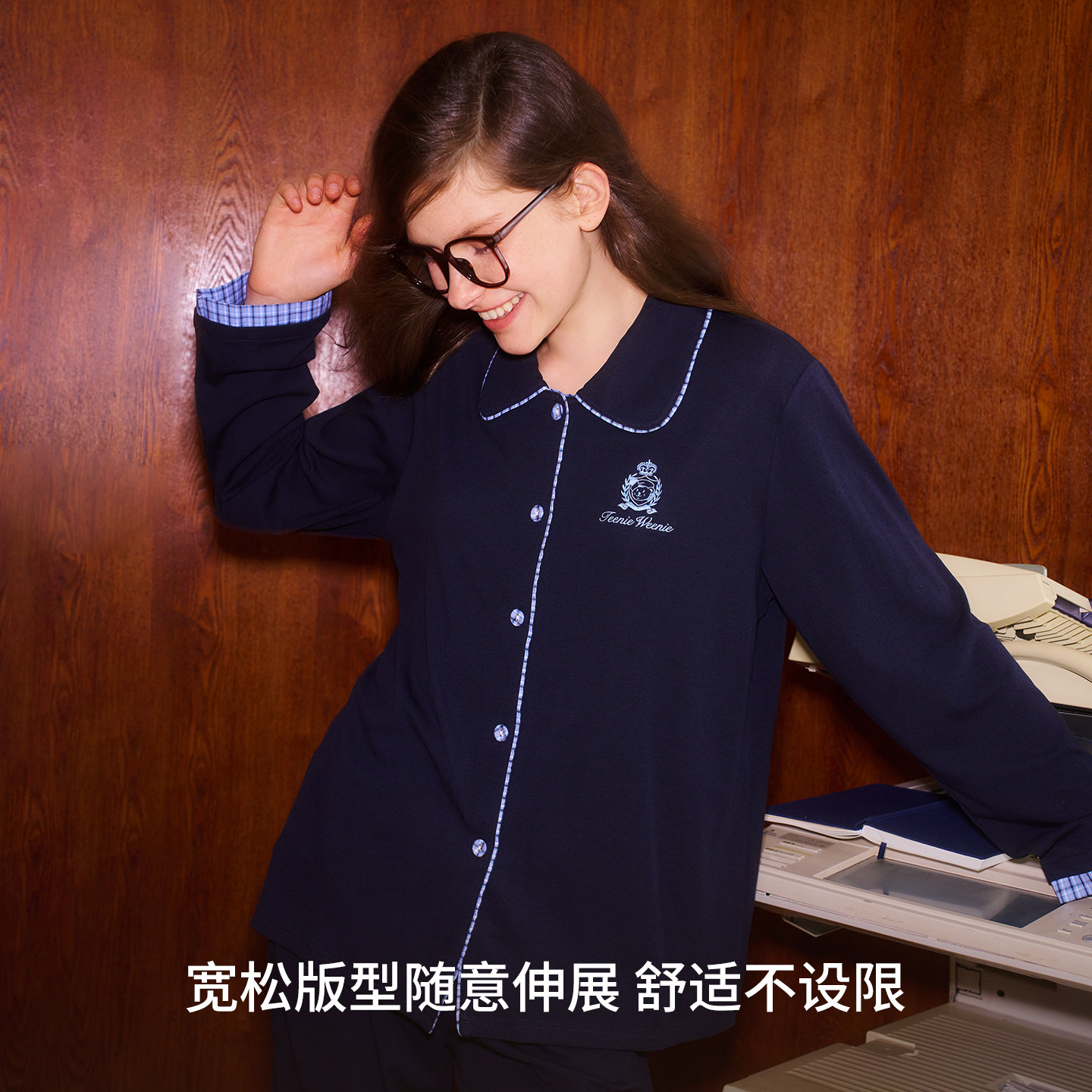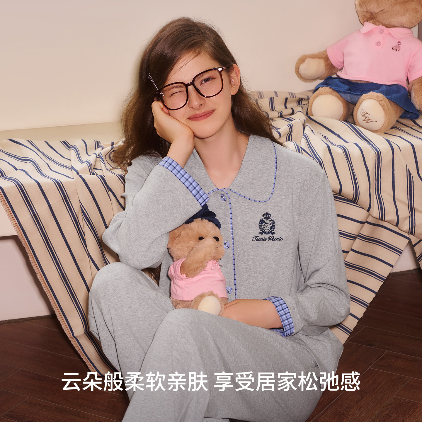 TeenieWeenie小熊莫代尔棉睡衣女2026新款秋季海军风家居服套装女
