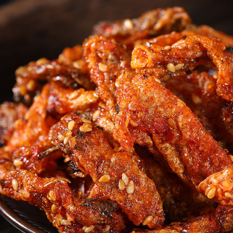 即食香辣鱼皮脆零食500g大包装麻辣鱼皮干蜜汁甜辣鳕鱼皮海鲜小吃