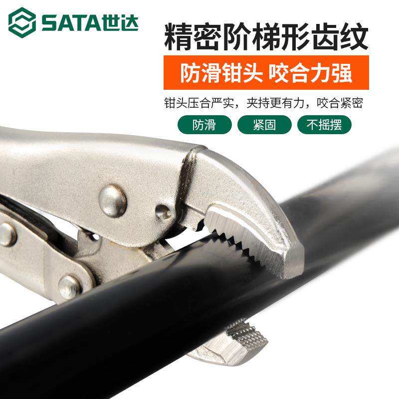 世达大力钳 铁皮C型链条可调节曲直圆口尖嘴带刃焊接木工夹紧固定