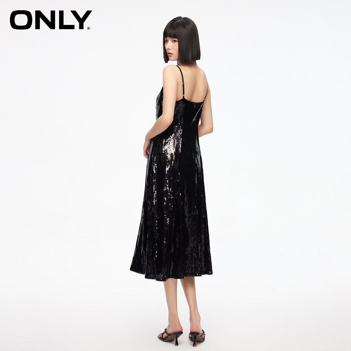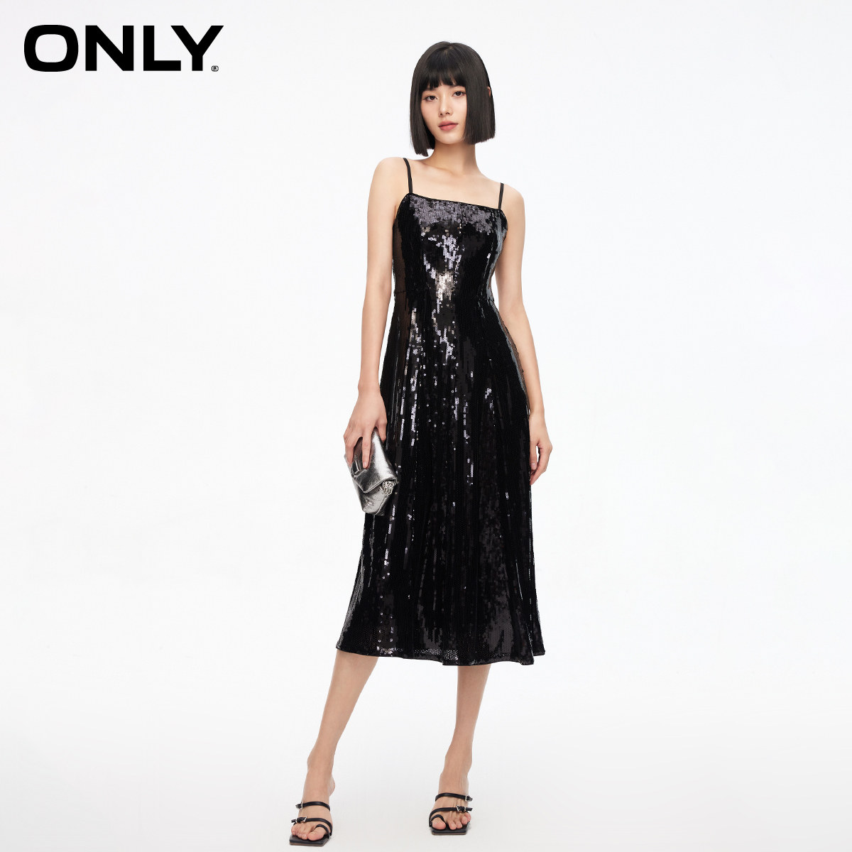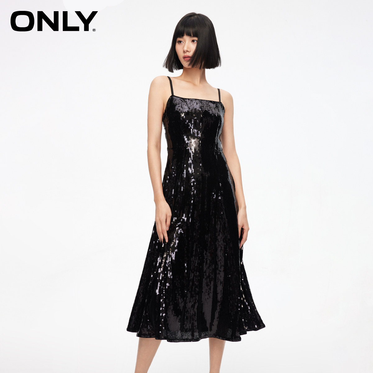 【ONLY奥莱】秋冬时尚亮片中长款伞裙吊带连衣裙女