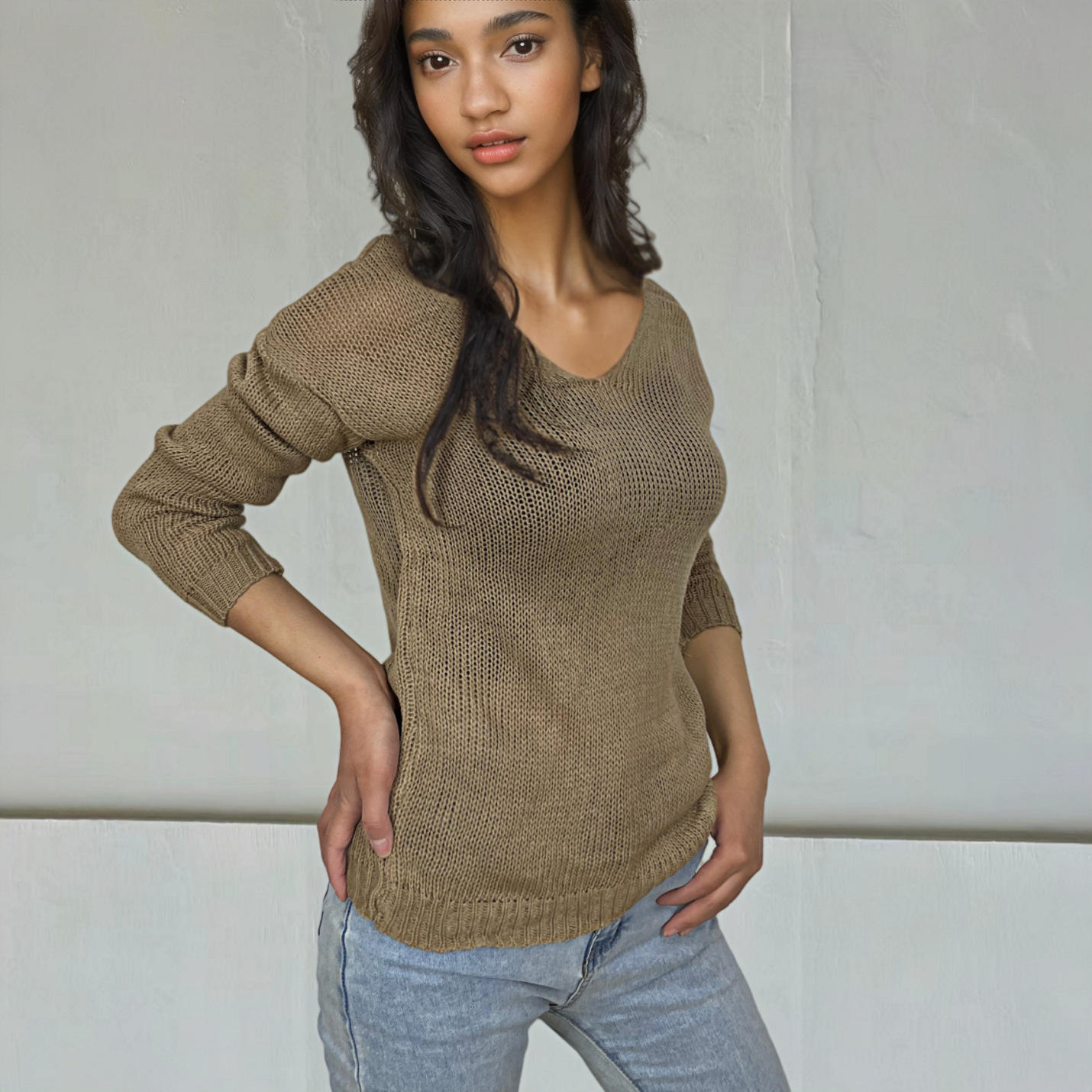 速卖通外贸女式衫欧美双V领袖修身针织毛衣外套上衣毛针织衫