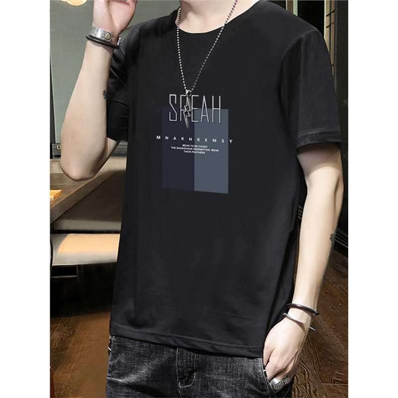以纯YISHION短袖t恤男士夏季薄款圆领宽松上衣青少年印花休闲半袖